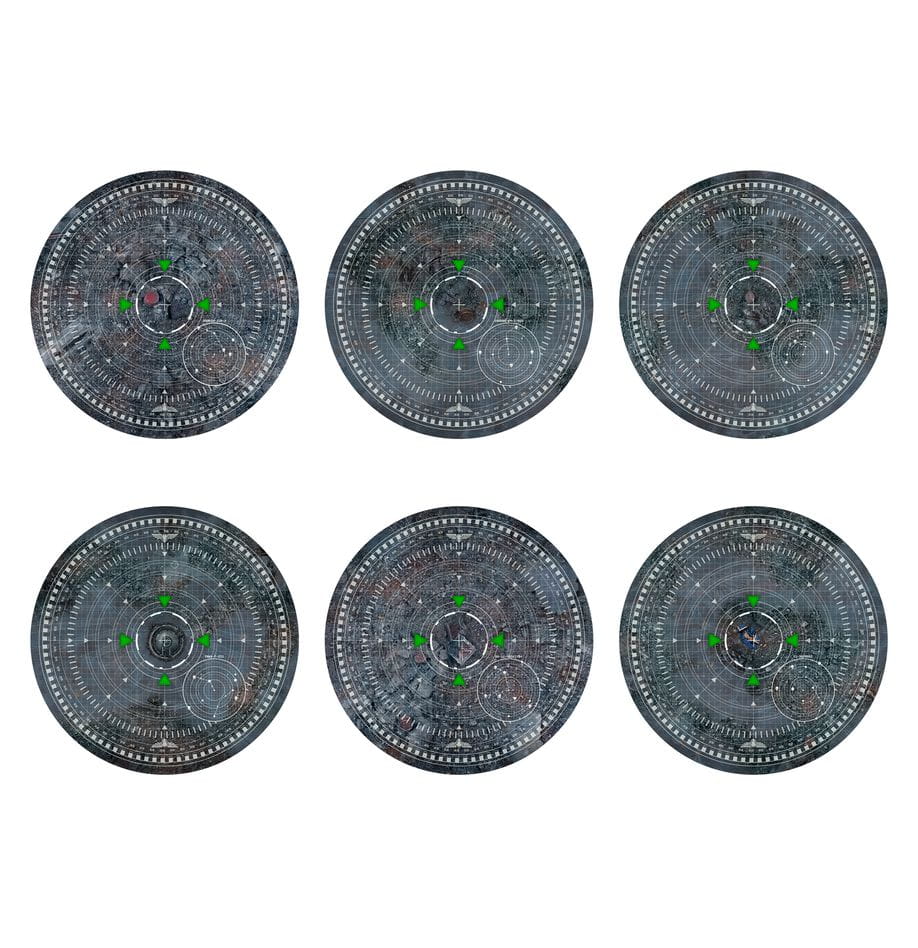 Ten zestaw sześciu okrągłych mat celów ułatwia przygotowanie gier Warhammer 40,000 - wystarczy rozłożyć je na planszy przed rozpoczęciem rozgrywki, aby uzyskać usprawnione, krystalicznie czyste wrażenia z gry. Każda z nich leży płasko na planszy, pokazując zarówno cele misji, jak i obszar punktacji. Zawierają grafikę nakładki dowodzenia, 40-milimetrowy cel centralny i 3-calowy okrąg na zewnątrz.