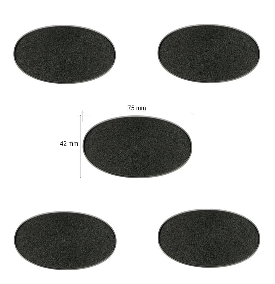 Ten pakiet zawiera pięć owalnych podstaw Cytadeli 75x42mm.