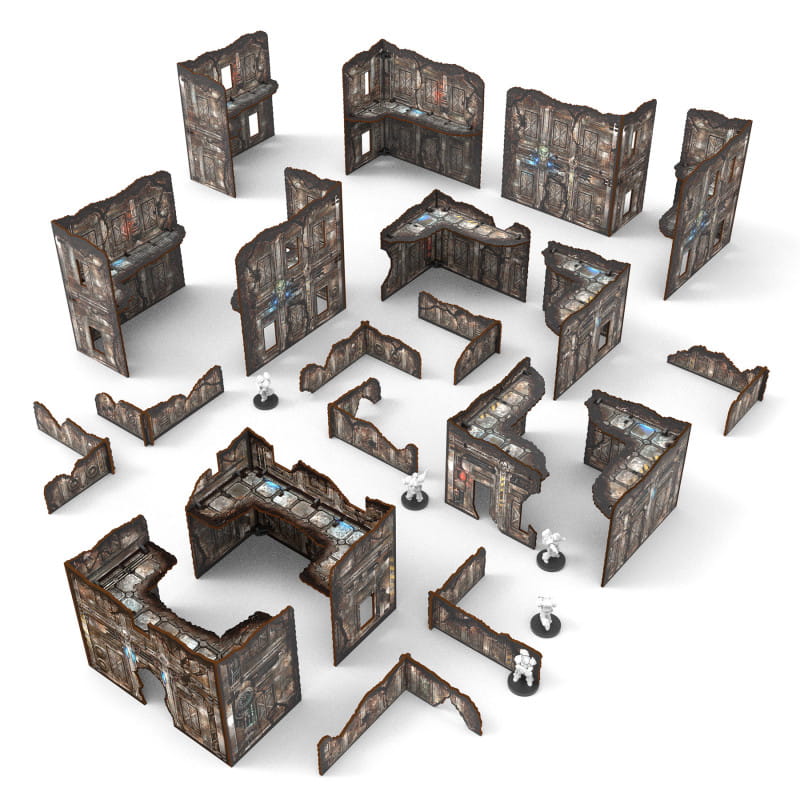 To uniwersalny zestaw terenu do gier bitewnych i figurkowych — sprawdzi się zarówno w sci-fi, jak i fantasy, a także w rozgrywkach narracyjnych i turniejowych.